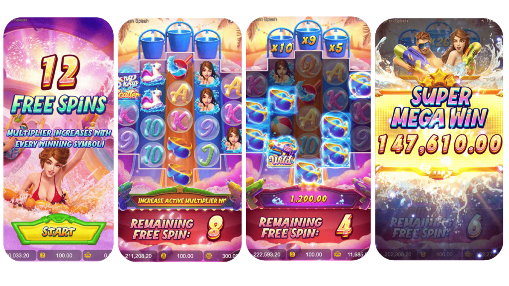 Songkran Splash เป็นวิดีโอสล็อตแบบ 5 รีลที่มีรูปแบบไม่เหมือนใคร โดยรีล 1 และ 5 จะมี 3 แถว รีล 2 และ 4 มี 4 แถว ส่วนรีลกลางรีล 3 มี 5 แถว ภายในเกมมาพร้อมระบบ ตัวคูณเพิ่มขึ้นเรื่อยๆ ซึ่งจะทำงานเมื่อสัญลักษณ์ที่ชนะปรากฏบนรีล 2, 3 หรือ 4 โดยแต่ละรีลที่มีสัญลักษณ์ชนะ จะตั้งค่าหรือต่อยอด ตัวคูณของรีลนั้นๆ ทำให้โอกาส ในการรับรางวัลสูงขึ้นและทุกการหมุนเต็มไปด้วยความตื่นเต้น